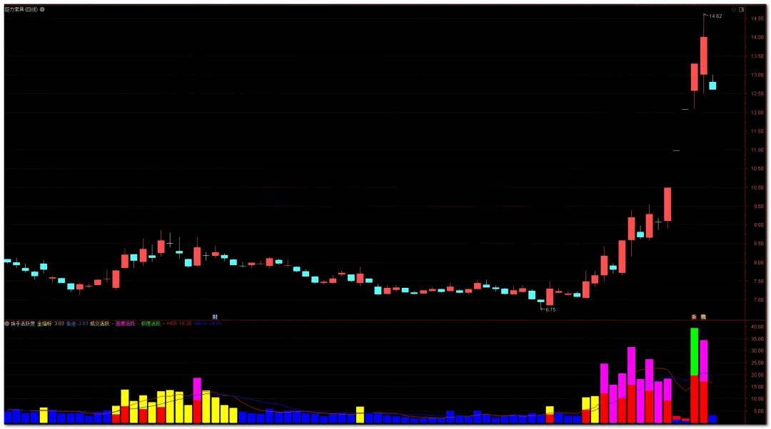 警惕“绿色死亡换手” :很多小白看到换手率高觉得是好事,说明有人买。错! 老股换手率超过35%(绿色柱子) ,90%的情况是主力在出货给散户。看到绿色柱子,别冲进去当接盘侠。缩量阴跌不抄底 :如果指标全是 蓝色柱子 ,且股价一路阴跌,千万别去抄底。因为没有换手就没有承接,这种“钝刀子割肉”最疼。均线趋势配合 :所有信号都要配合均线系统。如果股价在60日线下方,即使出现黄色活跃柱,也只能当反弹做,快进快出,不要恋战。