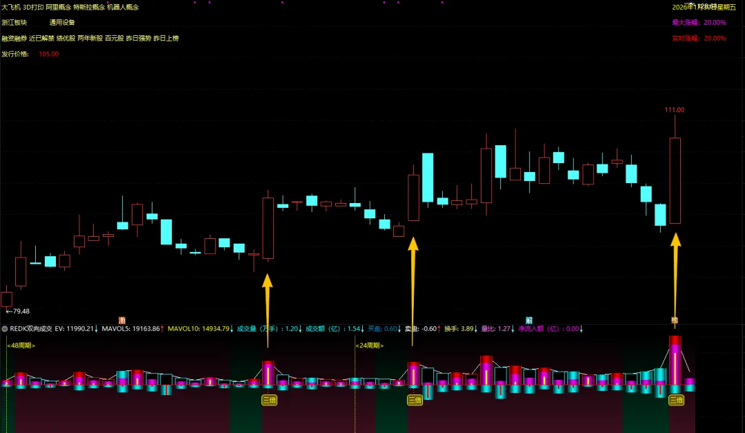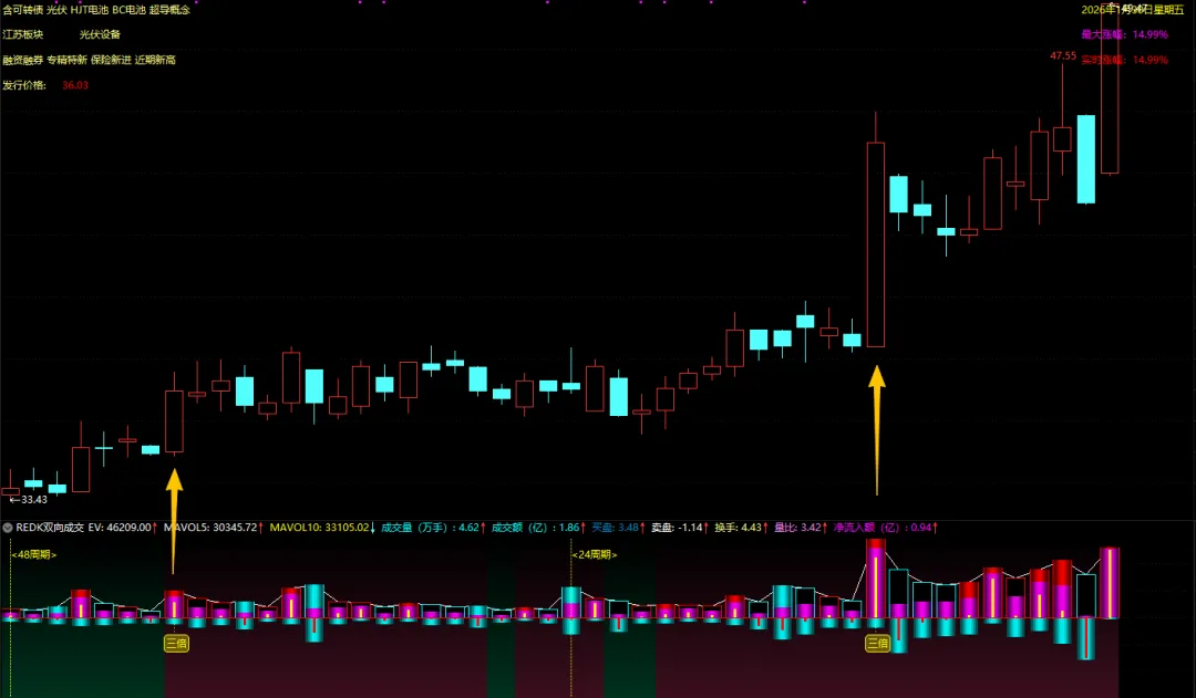 🔶 REDK成交量指标:是红K工作室在成交量指标基础上,附加了主力暗盘资金和三倍量阳线交易战法;