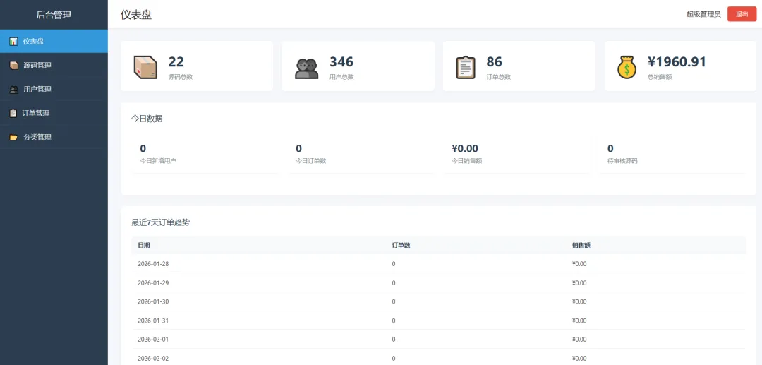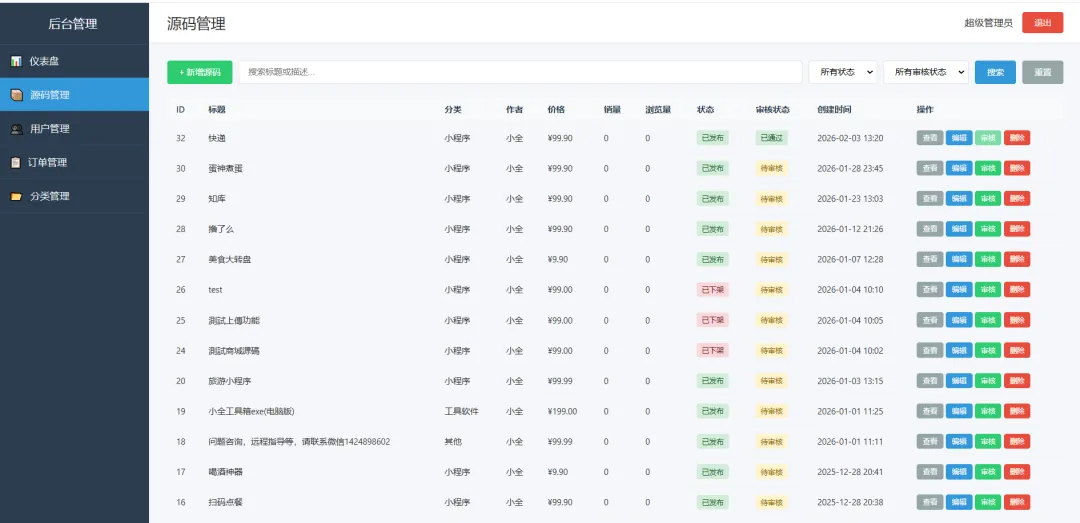 小全源码站,目前因为服务器原因,暂时属于试运行状态,源码会陆陆续续更新上线。也邀请更多朋友加入开发者,一起赚取收益。