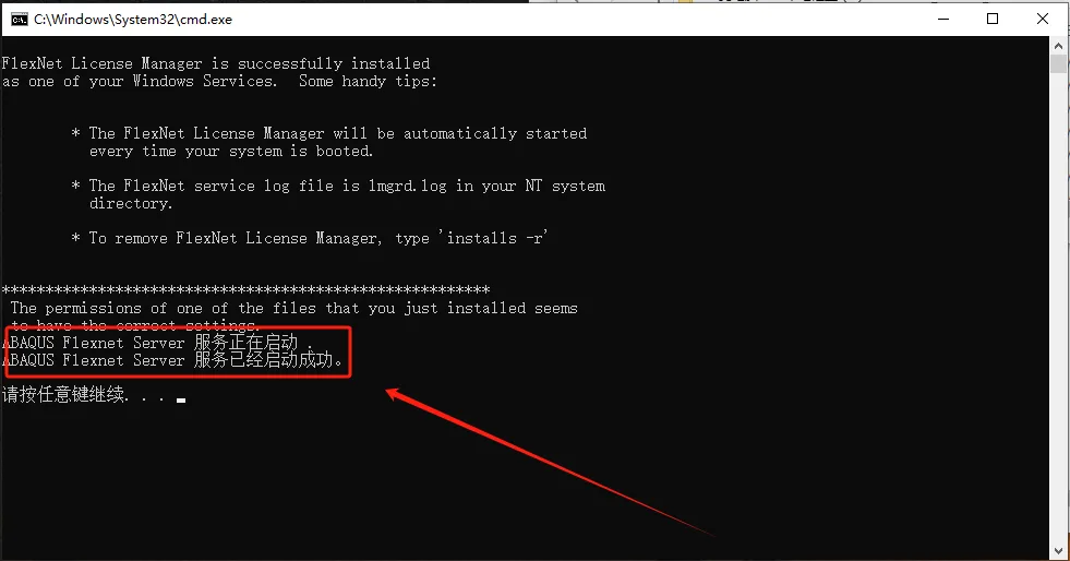 第六步:运行成功后,提示【服务启动成功】,如下图所示,然后右上角关闭即可。