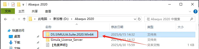 第十步:返回第二步解压的文件夹,打开【DS.SIMULIA.Suite.2020.Win64】文件夹。
