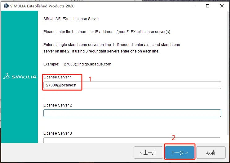 第二十二步:在License Server1处输入【27800@localhost】,点击【下一步】。