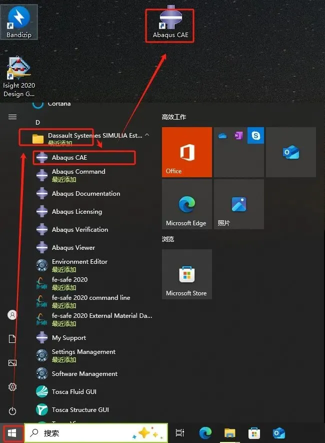 第四十九步:点开始,找到D开头的文件夹的文件,如下图所示,找到【Abqqus CAE】,将其拖到桌面。