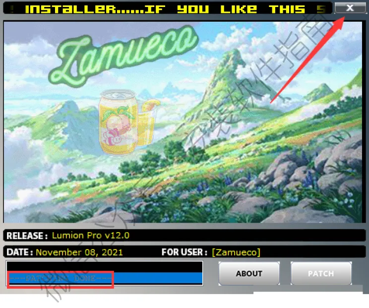 16.显示 PATCHING DONE,点击右上角X关闭。