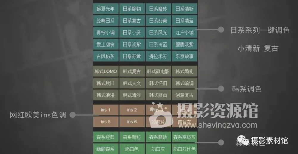 日系20款,韩系12款,ins欧美风8款,森系8款