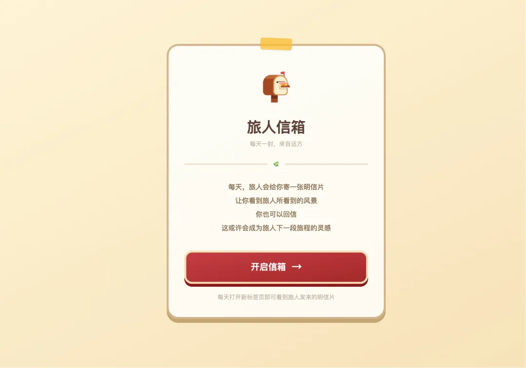 做了一个很棒的新标签页插件:旅人信箱 – 每天收到一封来自远方旅人的明信片