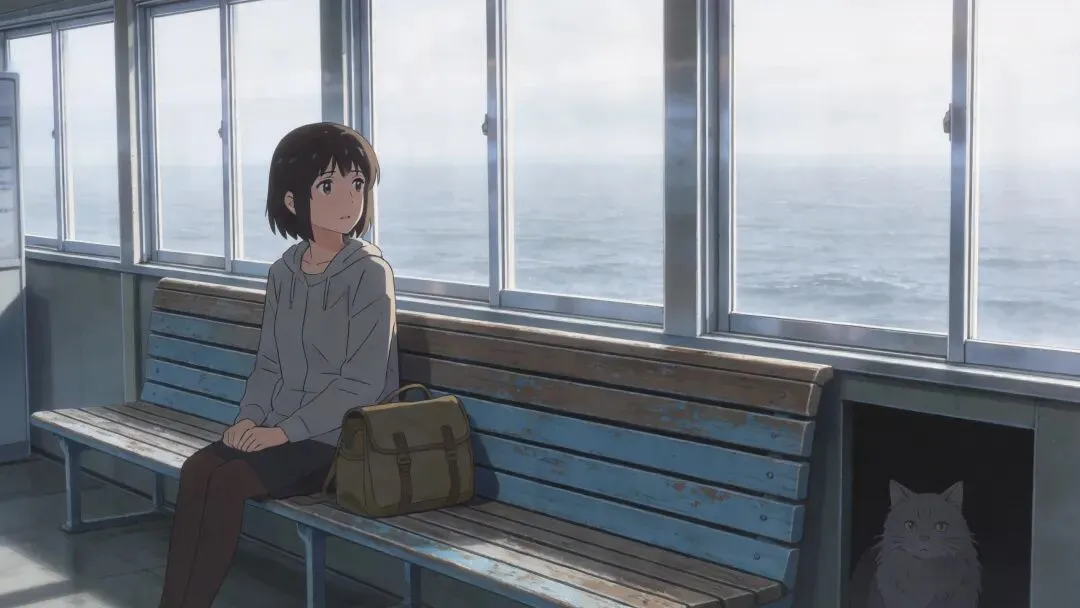 这里的候车厅只有我一个人。长椅上的漆脱落了大半,摸上去凉飕飕的。刚才在月台看海,风猛地灌进来,那种咸腥味让我想起那天在浮光港翻出来的旧信。虽然那个约好一起出发的人不在了,但坐上车的一瞬间,我突然觉得这空白的一页终于被填上了。对面坐着个抱着猫的老太太,猫一直盯着我的包看,大概是因为里面塞了路边买的小鱼干。我突然在想,如果当初我们真的来了,会因为这难吃的列车盒饭吵架吗?你那边下雪了吗?