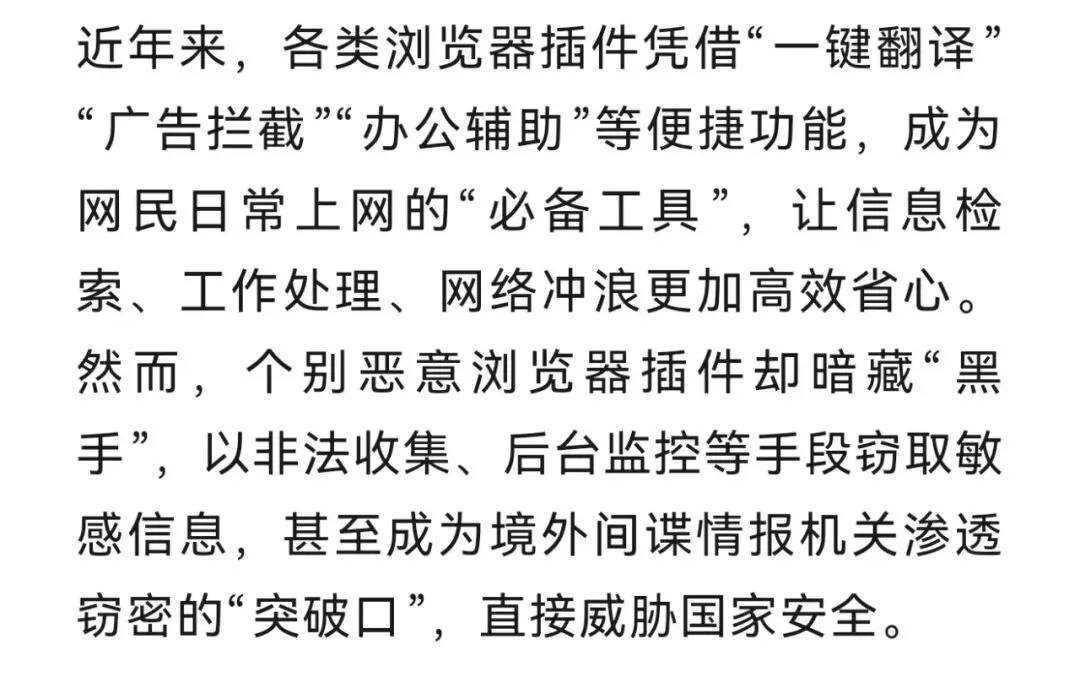 网盾先锋 | 涉密文件被恶意插件截取、个人终端成泄密“窗口”,国家安全部提示→