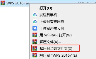 1)解压下载的安装包【WPS 2016.rar】。