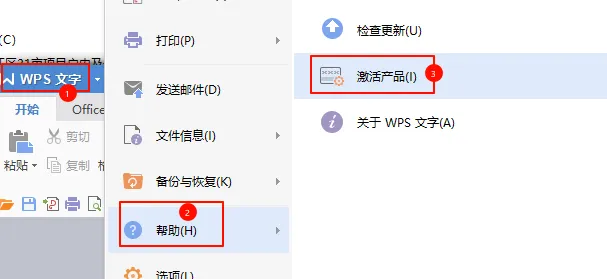 5)打开WPS任意组件(如Wps文字),点击【WPS文字】→【帮助】→