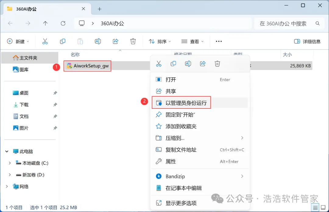 1、下载360AI办公软件安装包到电脑上,右键选择【解压到360AI办公\】