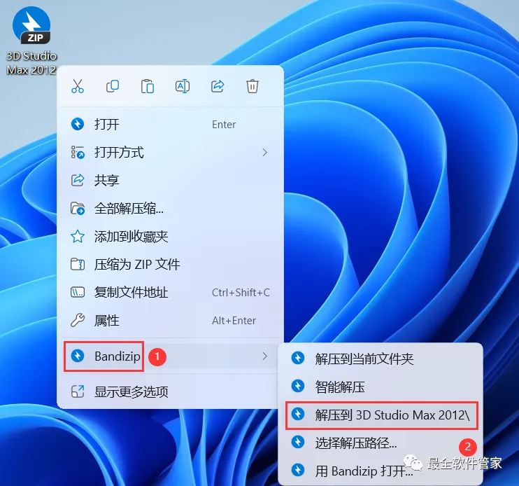 1、下载3D Studio Max 2012软件安装包到电脑上,右键选择【解压到3D Studio Max 2012\】