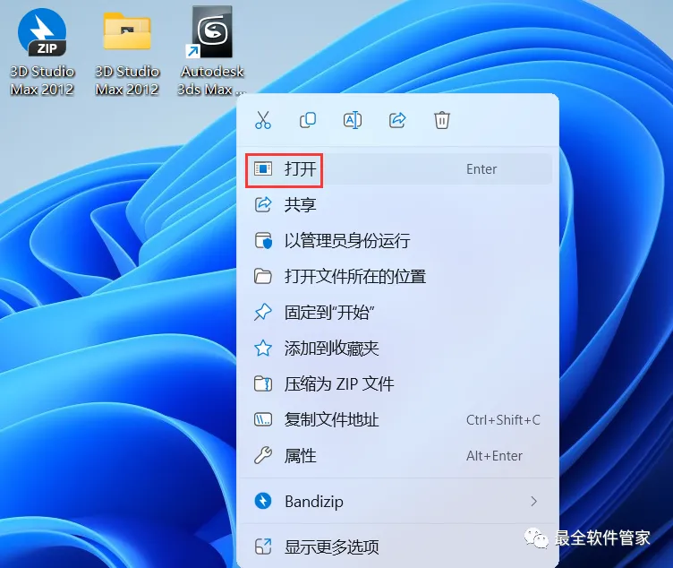 11、回到桌面,右键桌面上的【3ds Max 2012软件图标】,点击【打开】