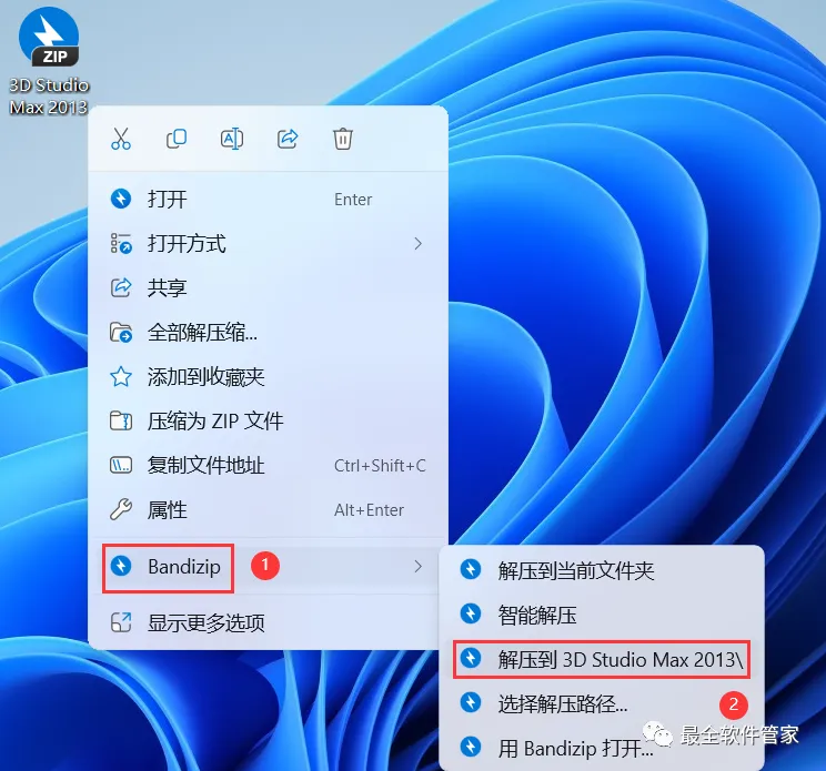 1、下载3D Studio Max 2013软件安装包到电脑上,右键选择【解压到3D Studio Max 2013\】