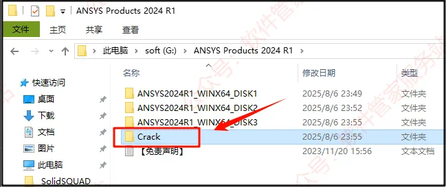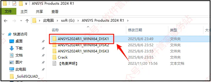 第三步:打开解压后的文件夹,找到【ANSYS2024R1_WINX64_DISK1】文件夹并打开。