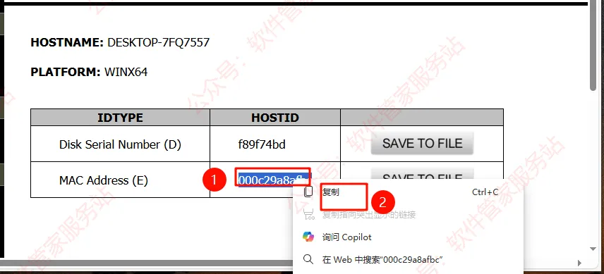 第二十一步:复制【mac address】行的【hostid】数值,如下图。(如有多个,选其中任意一个即可。)