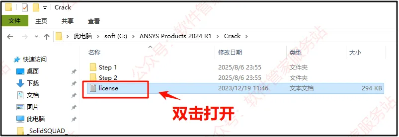 第二十二步:返回第二步解压的文件夹,并打开【Crack_】文件夹,选中【license】文件双击或右击打开,如果电脑不能直接打开,选择以记事本打开即可。