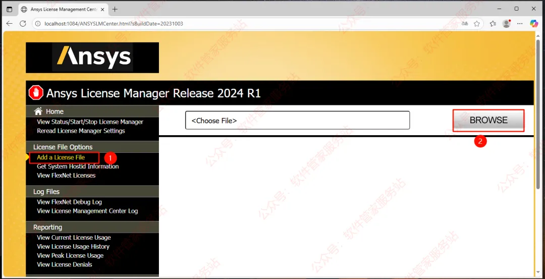 第二十五步:返回第20步的操作界面,点【Add a License File】,然后点【BROWSE】。
