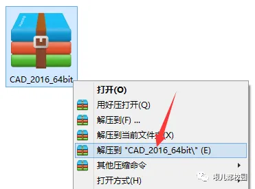 1.鼠标右击软件压缩包,选择“解压到CAD_2016_64bit”