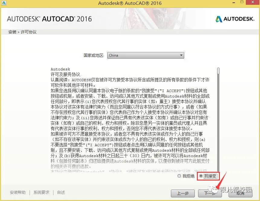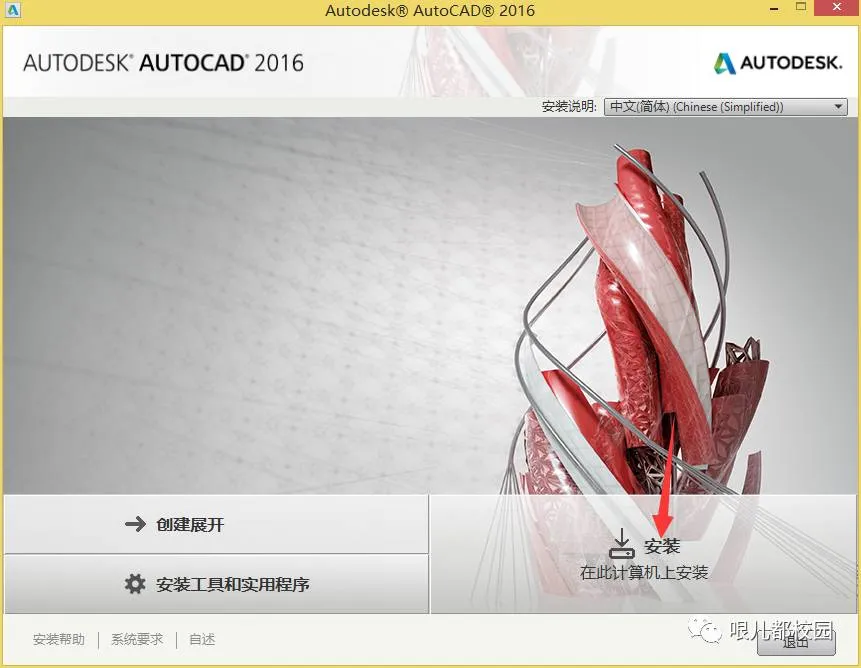 6.接下来选择安装路径。可以使用默认路径,也可以自行更改(路径中不要有中文即可)。然后点击“安装”。如下图默认路径为:C:\Program Files\Autodesk\ 可以直接将C改为D,安装到D盘