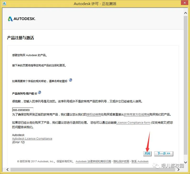 5.输入序列号:666-69696969,产品密钥:001H1,然后点击“下一步”