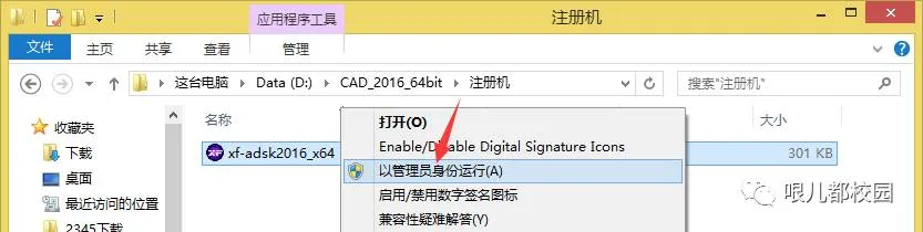 13.打开解压出来的安装包注册机文件夹,鼠标右击注册机,选择“以管理员身份运行”