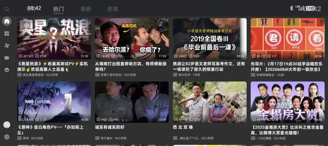 电视盒子上追番的,或想在电视盒子上看热门短视频的可用。影视功能估计不如小苹果影视好用