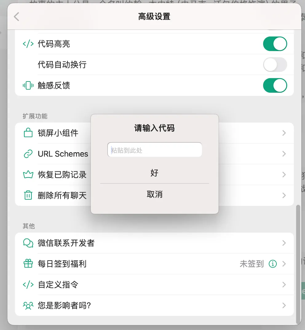 兑换方式:ChatX 软件内设置-高级设置-自定义指令