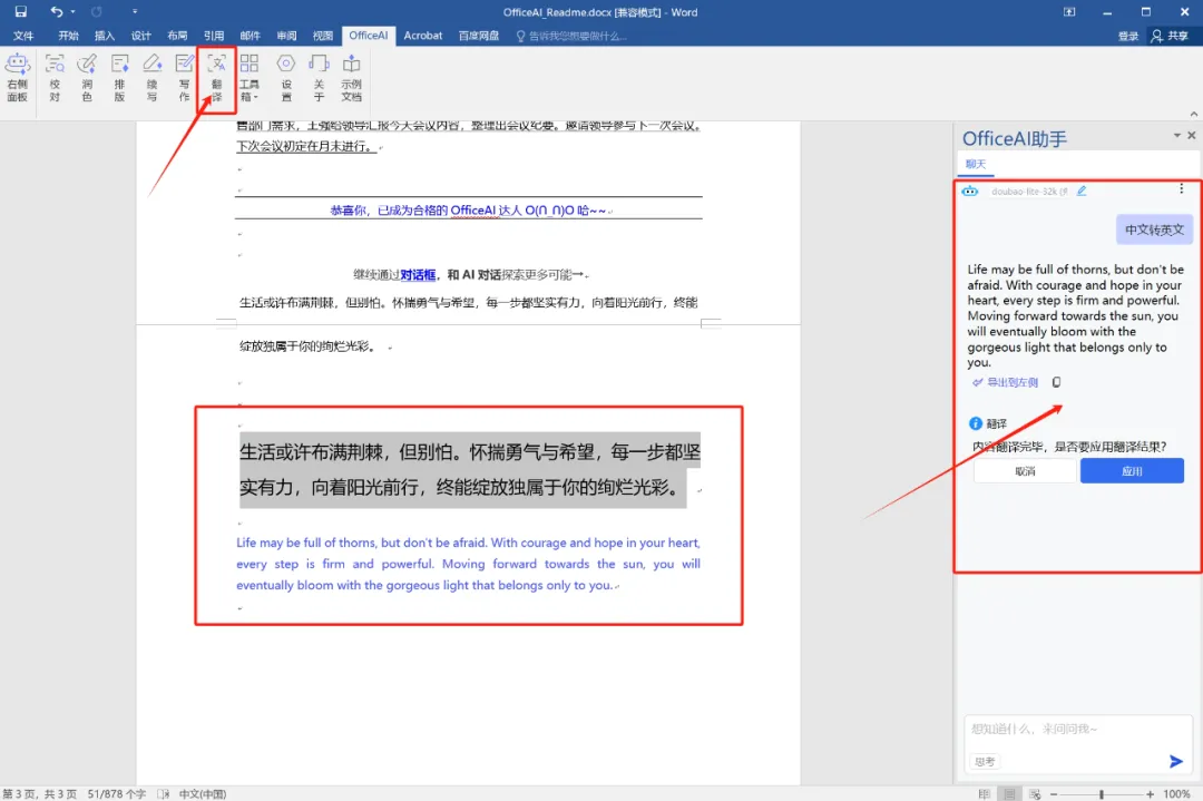 5.翻译功能:选中文字,点击工具栏的翻译按钮,可中英互翻,也可自定义语言(设置中韩翻译等等),用它写个双语说明书还不错~