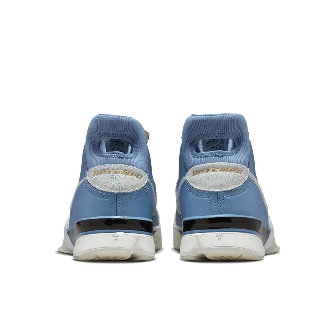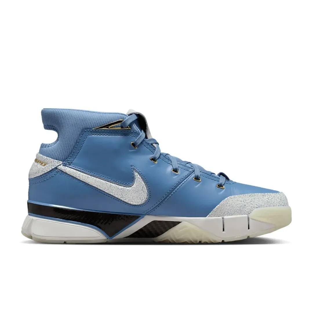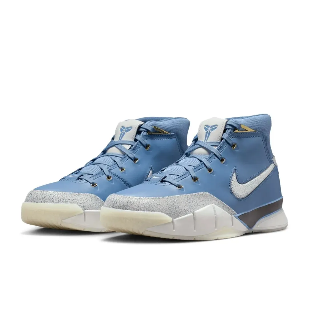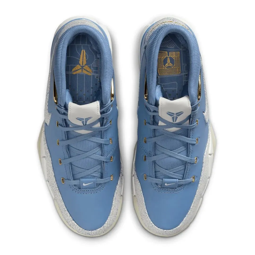 鞋款选用优质皮革材质,工装蓝叠加山峰白的配色组合,旨在致敬科比在加州英格尔伍德(Inglewood)的首个传奇主场。同时结合金色点缀,为其增添几抹专属于胜者的烙印。为更适应现代比赛需要,该 Protro 版本适度调整缩小了碳纤维板尺寸,结合全掌 Zoom Air 气垫配置,带来流畅脚感与持续的回弹响应体验。