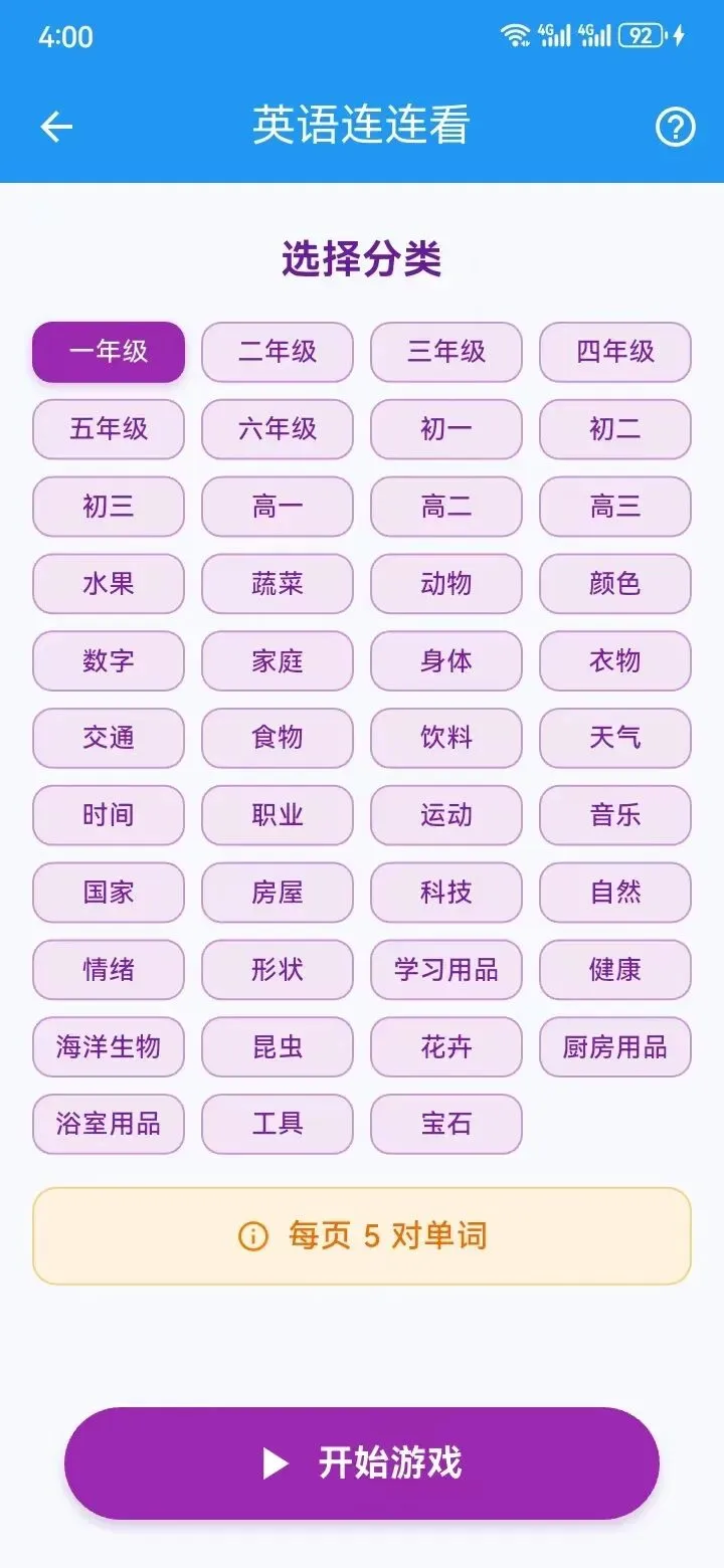 英语提升:单词配对游戏、词汇查询、发音辅助