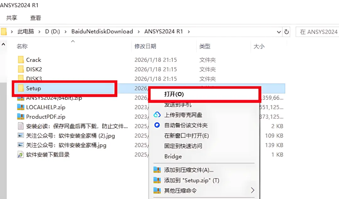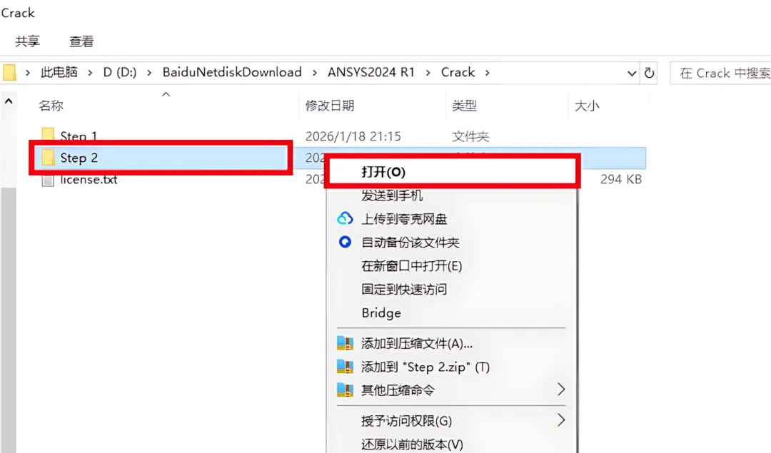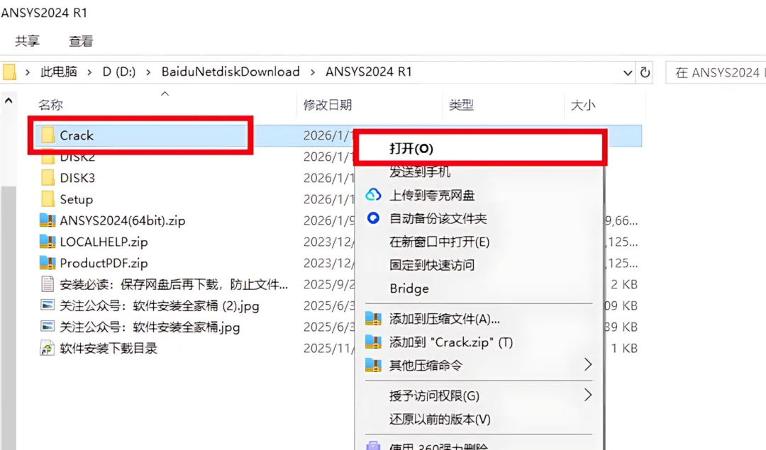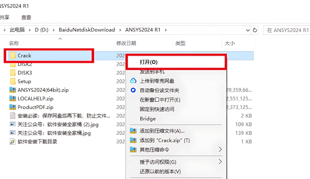 14.打开安装包解压后的【ANSYS2024(64bit)】文件夹,双击打开【Crack】文件夹。