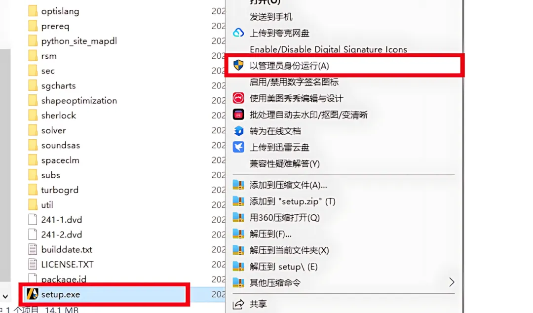 3.鼠标右击【Setup】选择【以管理员身份运行】。