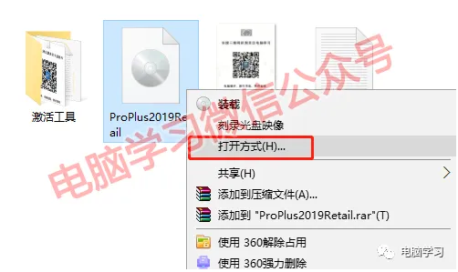 1、下载后先解压。打开解压文件夹,右击ProPlus2019Retail.img 选择打开方式。