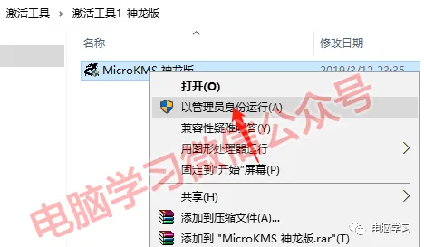 3、右击MicroKMS 神龙版.exe以管理员身份运行。