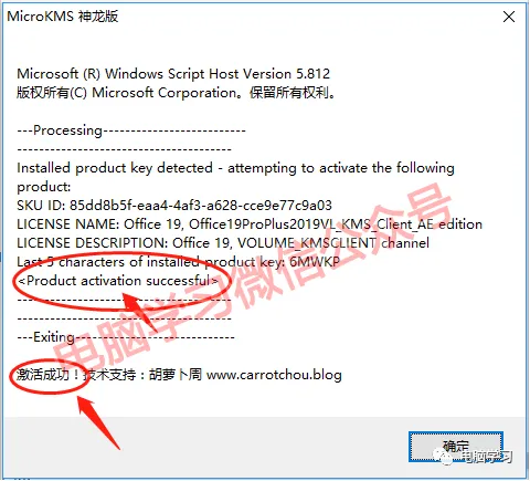 7、此时,出现下面画面。英文和中文都提示激活成功!