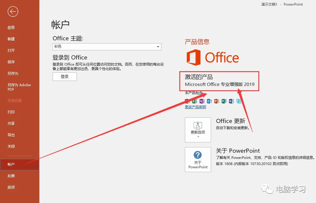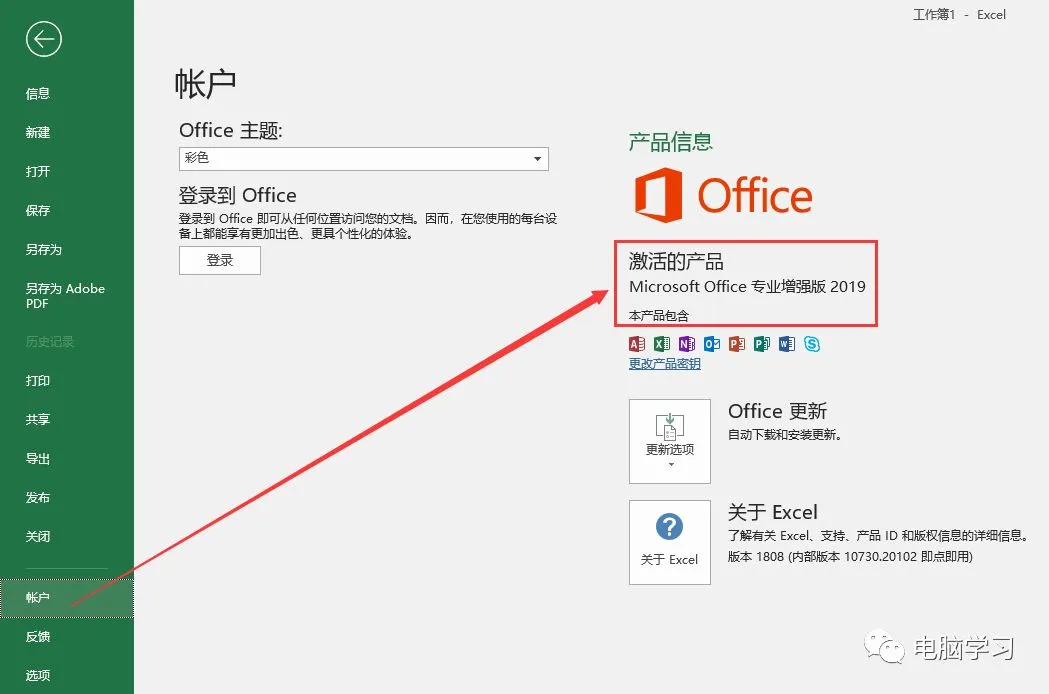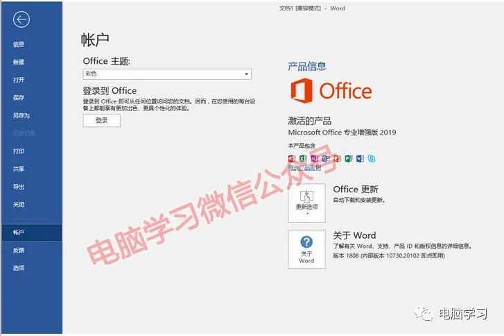5、点击账户就可以看到已经是激活的office2019专业增强版了。