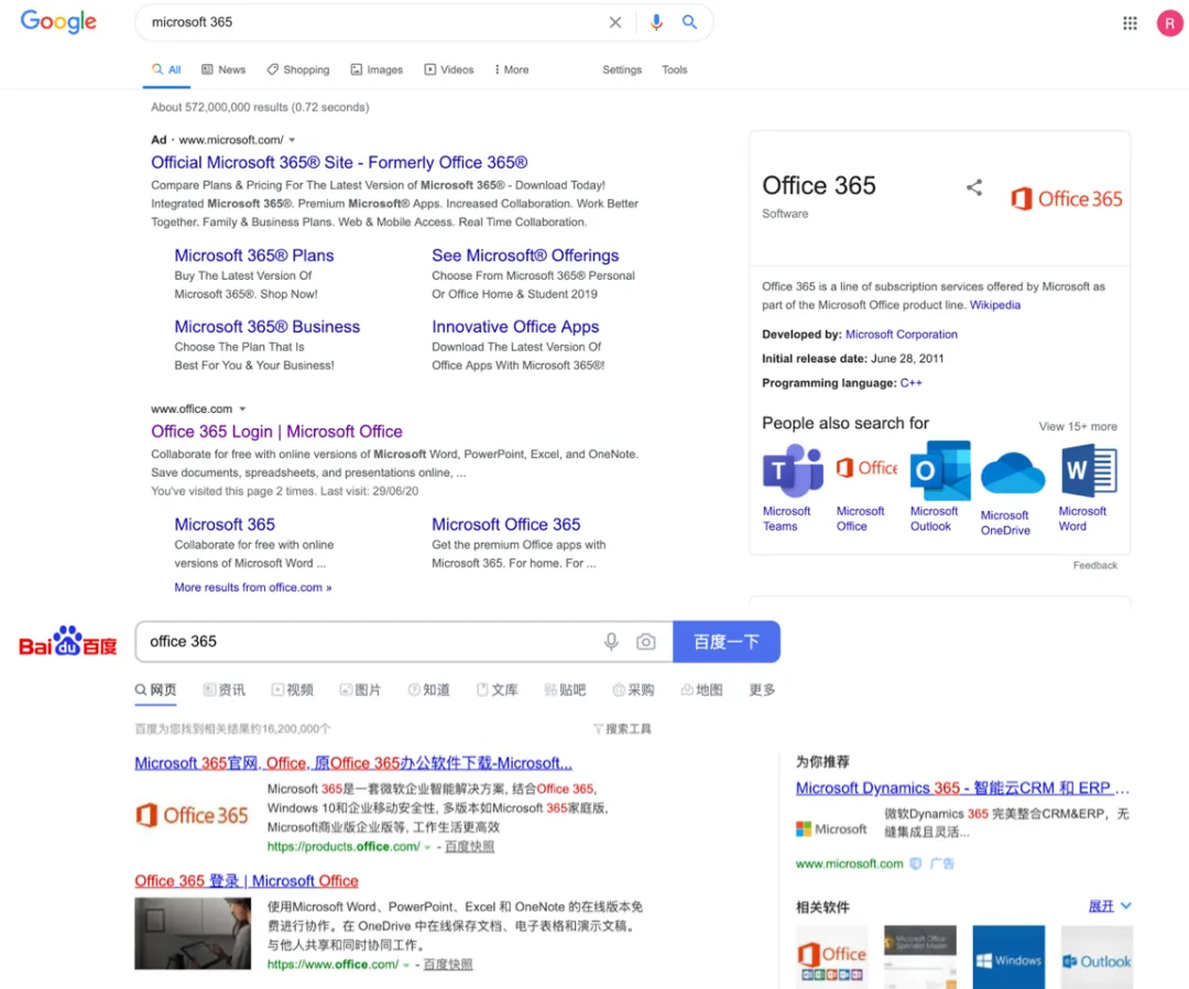 第一步:用自己的浏览器搜索Office 365(在加拿大的同学可用google搜索,在国内的同学可用百度搜索)。