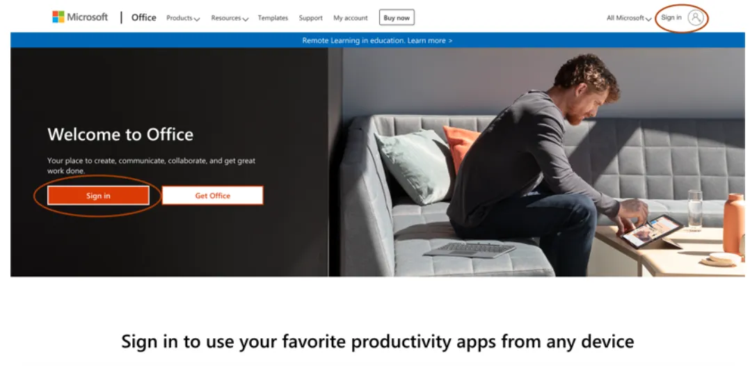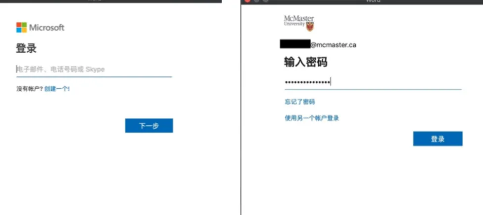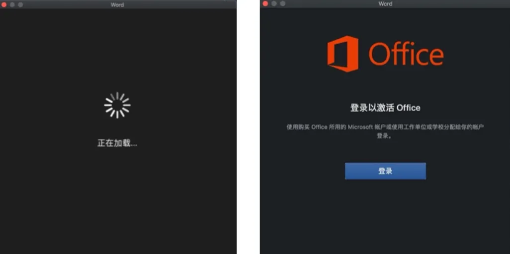 此处以Office Word为例,登录页面如下图所示。