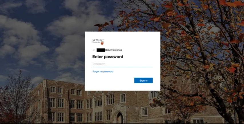 登录自己的麦马邮箱 (MACID@mcmaster.ca),并输入对应的密码,点击登录 (Sign In)。