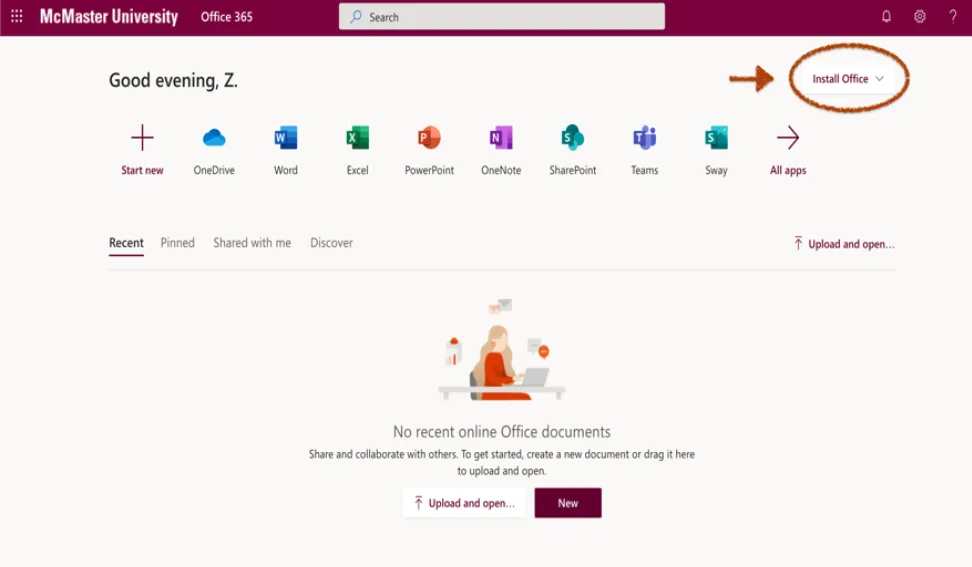 第三步:登录成功后进入下图页面,点击安装Office (Install Office),并选择Office 365 Apps。