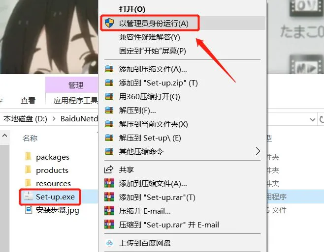三:右键【Set-up】选择【以管理员身份运行】
