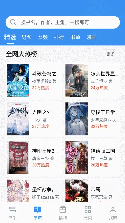 小说和漫画的分类、榜单都比较齐全,