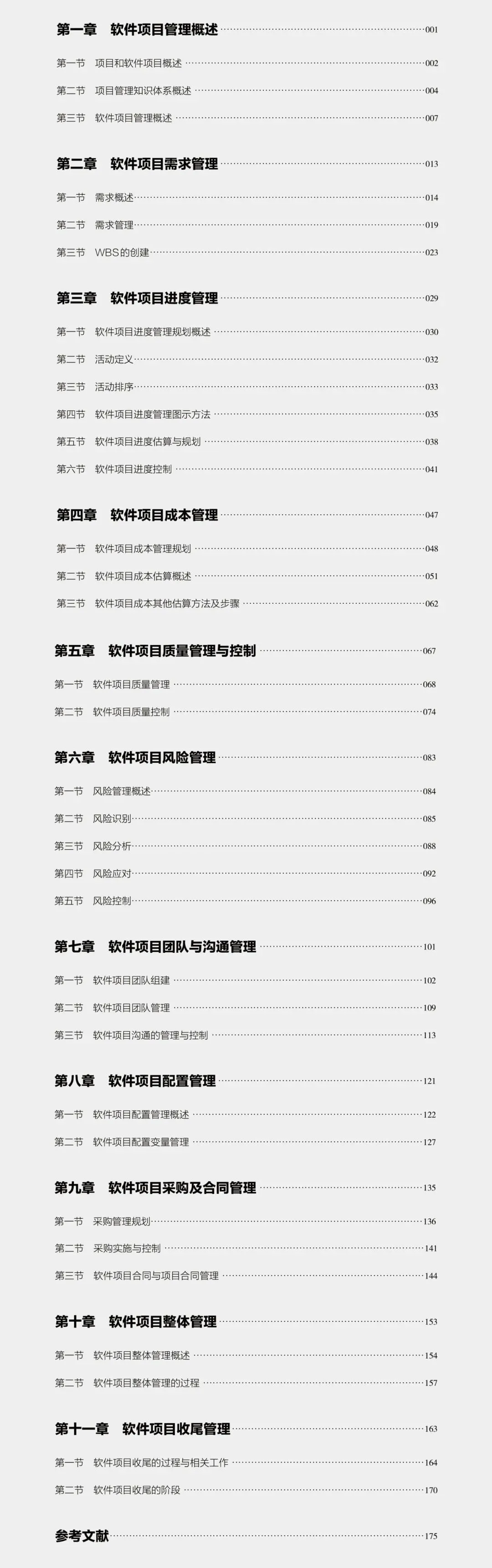 本书系统全面地呈现了软件项目管理知识体系,兼具理论深度与实践指引。全书共十一章,涵盖软件项目管理概述、需求管理、进度管理、成本管理、质量管理、风险管理、团队与沟通管理、配置管理、采购及合同管理、整体管理、收尾管理等完整知识域。本书每章均配有真实案例分析与课后练习题,旨在帮助读者深度复盘,提升解决复杂问题的专业能力。