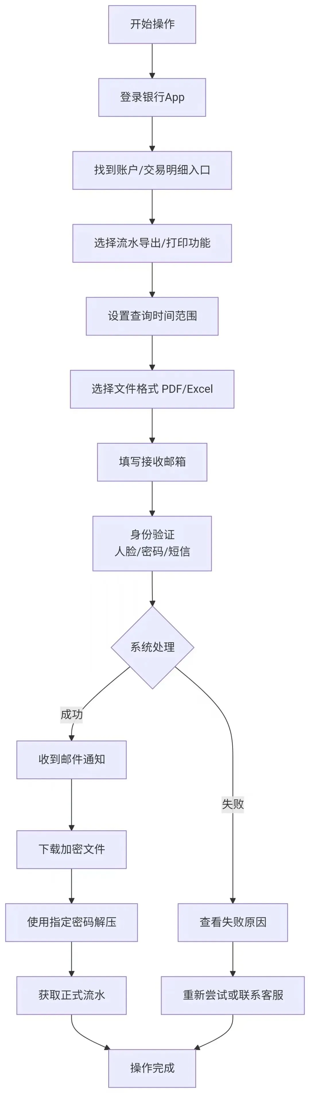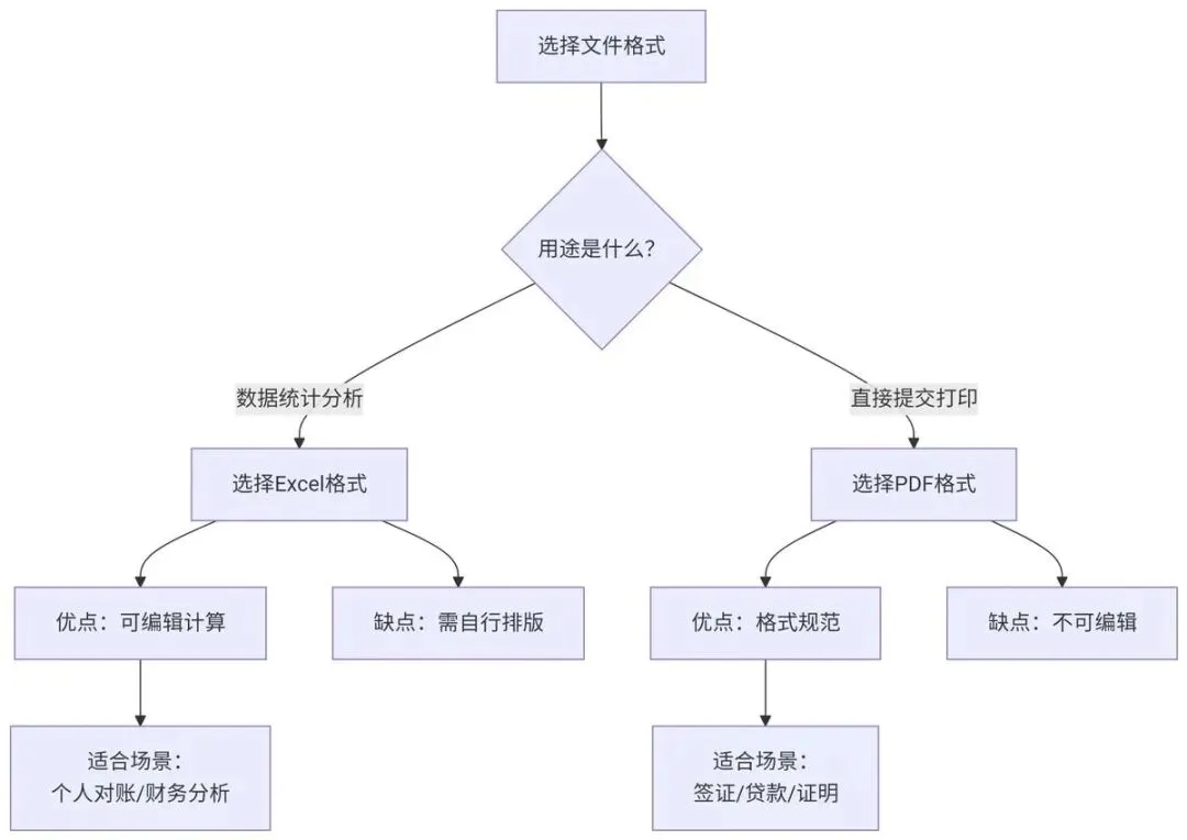 通过流程图可以清晰看到,各大银行流水导出操作都遵循相似逻辑: