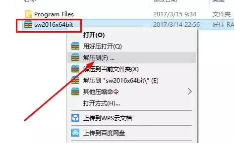 1.断开电脑网络,鼠标右击sw2016x64bit安装包选择解压