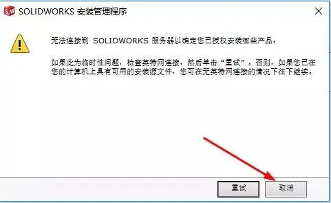 12.若出现提示警告,点击取消,重启电脑,从新安装(重启电脑安装时还是出现此提示,直接点击确定)。没有出现此提示,可忽略。
