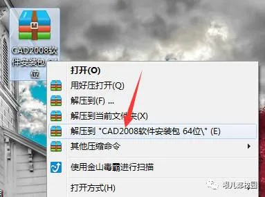 1.鼠标右击软件压缩包,选择解压到CAD2008软件安装包 64位