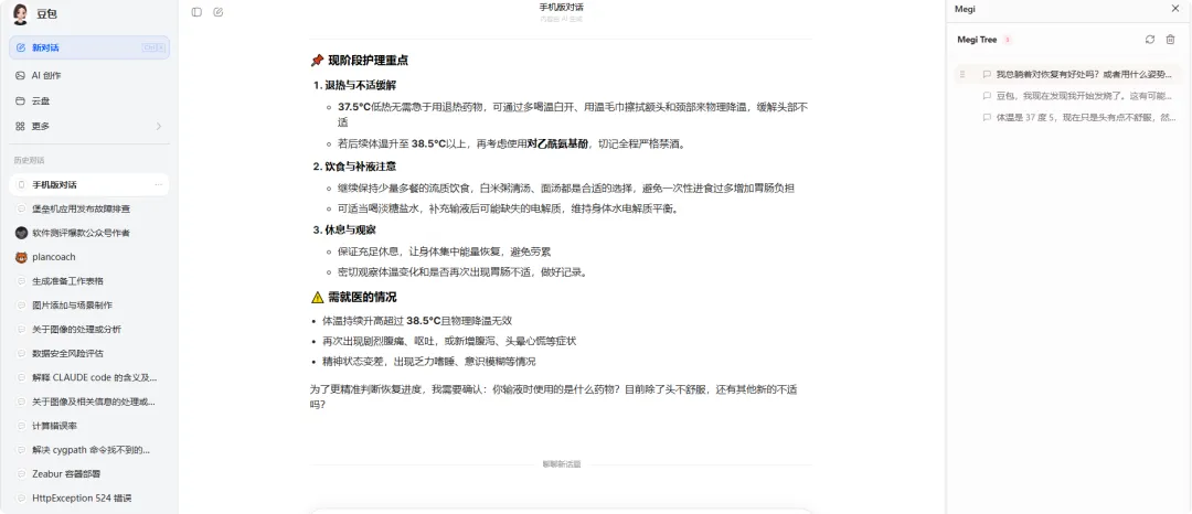 你就说那个对话框吧,永远是一条直肠子通到底。 我先问了个代码报错的问题,AI 给了段代码; 然后我觉得不对,又追问了三次; 突然想起来中午吃啥,又问了一嘴食谱; 回头想找刚才那个代码,完犊子了。