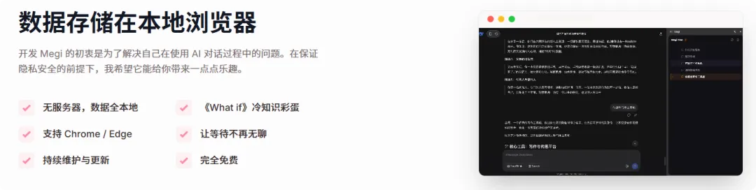 长文折叠有时候给 AI 喂数据,一粘贴就是几百行代码或者几千字文档。 屏占比太大了,看着心烦。 Megi 会自动把这种长输入折叠起来。 界面瞬间清净了。眼不见心不烦。